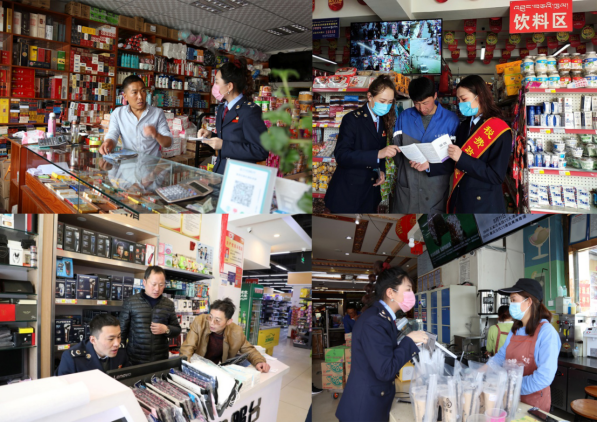 (图4:税务干部在阿里综合批零业民企代表——百益超市宣传政策)
