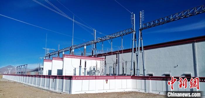 萨嘎220千伏变电站是西藏阿里与藏中电网联网变电站工程中第一座变电站,也是目前全世界海拔最高的220千伏变电站,采用了藏式风格建筑及围墙。(资料图)中国能建甘肃院供图