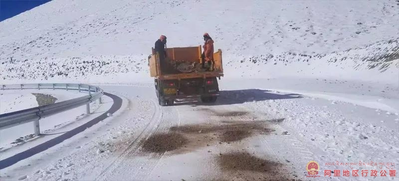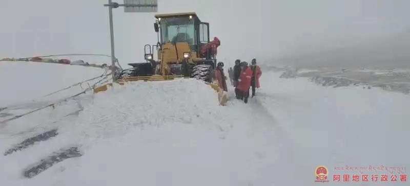 阿里国省公路接管组噶尔公路段筹备组巡查发现险情后,迅速启动除雪保通应急预案,投入保通人员10人以及装载机、推土机等设备,对积雪路段开展保通工作。