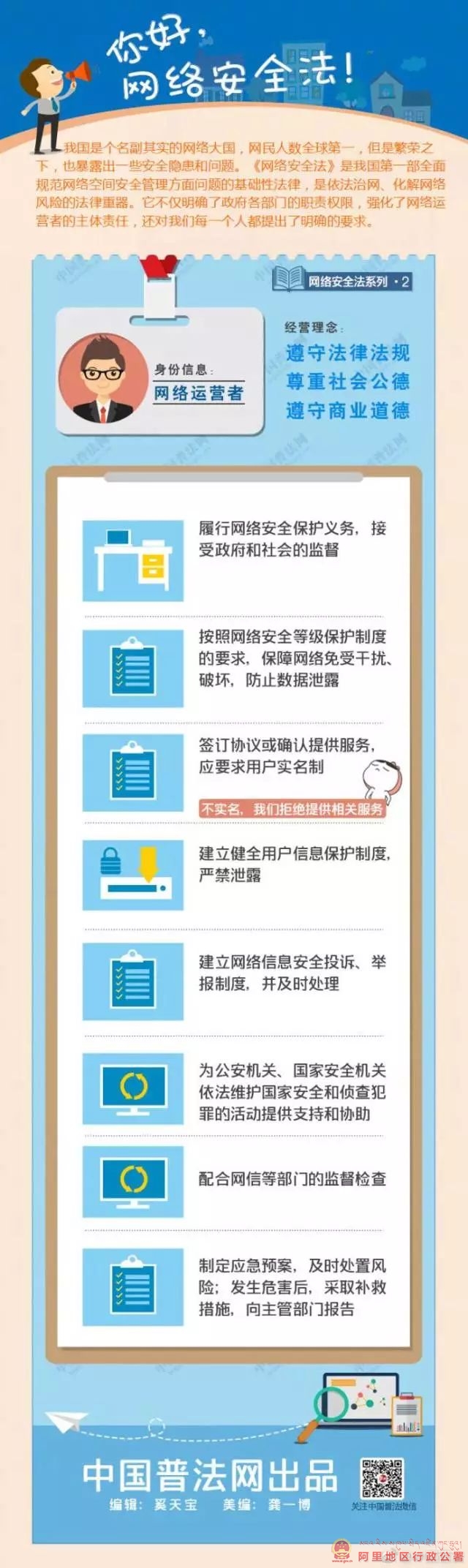 我国是个名副其实的网络大国,网民人数全球第一,但是繁荣之下,也暴露出一些安全隐患和问题。《网络安全法》是我国第一部全面规范网络空间安全管理方面问题的基础性法律,是依法治网、化解网络风险的法律重器。它不仅明确了政府各部门的职责权限,强化了网络运营者的主体责任,还对我们每一个人都提出了明确的要求。