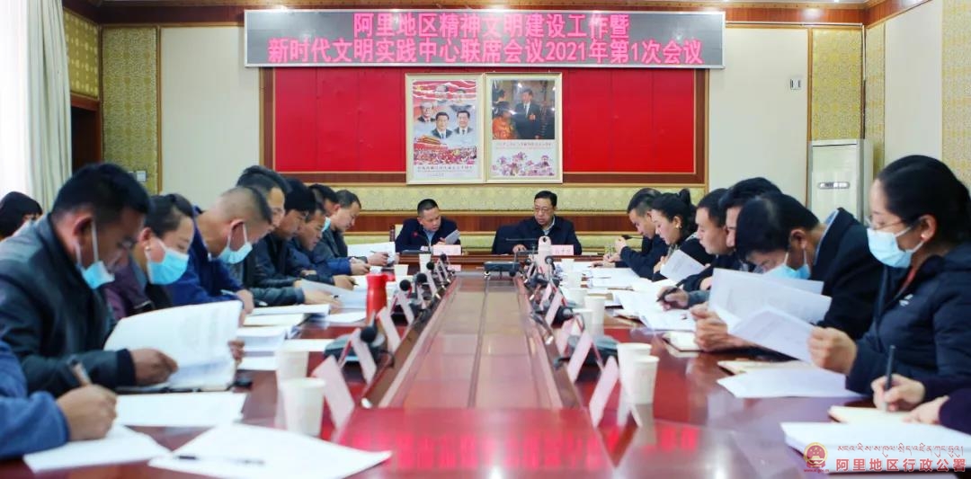 4月6日,阿里地区2021年精神文明建设工作暨新时代文明实践中心联席会议第1次会议召开,研究部署今年精神文明建设各项工作,动员全地区上下不断推进精神文明建设内容创新、方法创新、机制创新,推动全地区精神文明建设工作再上新台阶。地委委员、组织部长,地直机关工委书记何兴茂主持会议,地委委员、宣传部长、地区文明委副主任索南才旦出席会议并讲话。