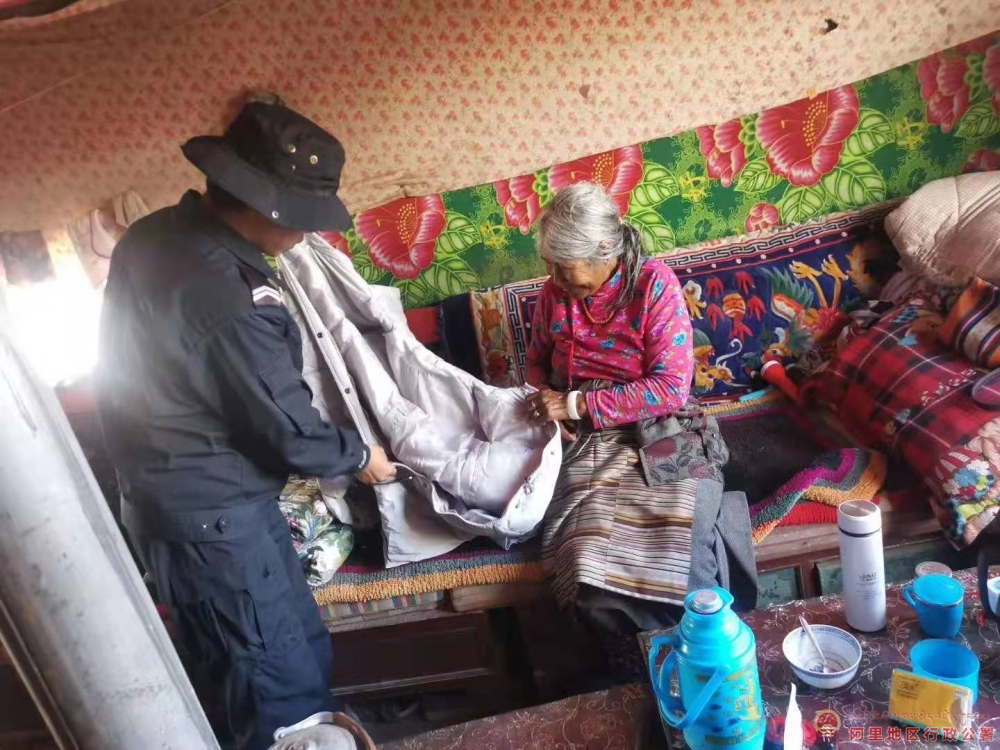 (图为索朗曲扎2020年8月为辖区孤寡老人送爱心物资)