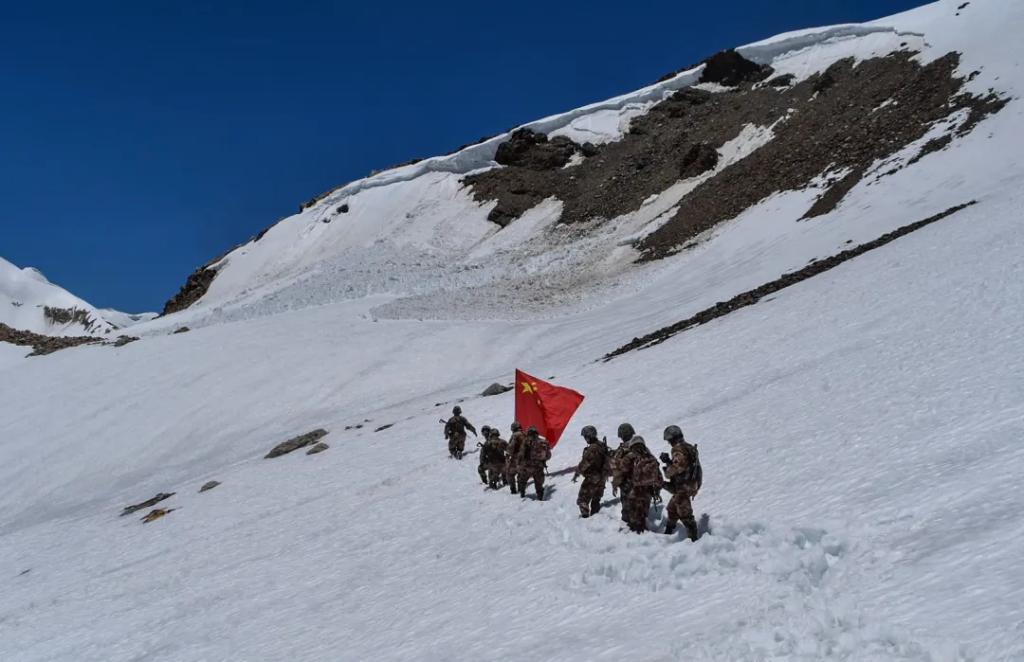 虽然已是七月炎夏时节,但是在“生命禁区”的西藏阿里高原,部分地区依旧冰封雪裹。2021年7月8日,驻守在喜马拉雅山脉腹地的西藏阿里军分区某边防团波林边防连,采取乘车与徒步相结合的方式,按计划对海拔5600多米的某点位实施巡逻任务,官兵们克服高寒缺氧,踏雪巡边,确保了边防一线的安全稳定。