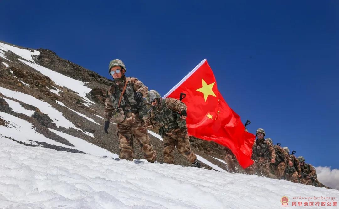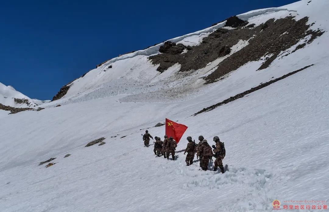 虽然已是七月炎夏时节,但是在“生命禁区”的西藏阿里高原,部分地区依旧冰封雪裹。2021年7月8日,驻守在喜马拉雅山脉腹地的西藏阿里军分区某边防团波林边防连,采取乘车与徒步相结合的方式,按计划对海拔5600多米的某点位实施巡逻任务,官兵们克服高寒缺氧,踏雪巡边,确保了边防一线的安全稳定。