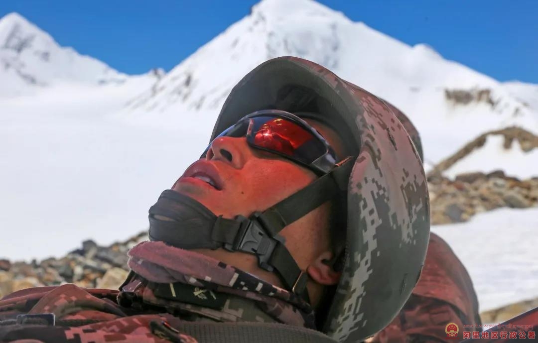 7月8日,西藏阿里军分区某边防团巡逻官兵在途中休息