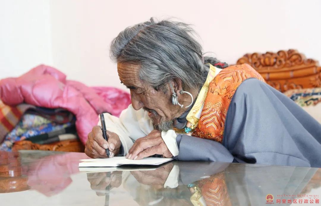 老人说,他曾5次向组织提交入党申请。谈到为什么那么执着入党时,老人说,自己的父亲是农奴,衣食住行都很困难。解放以后,1962年到1964年,他给解放军放了三年羊,解放军把羊寄养在他的家里,他一边放自己的牛羊,一边放解放军的羊。同时,他还用牦牛给边境上的解放军运送物资、子弹、炮弹等。解放军为了感谢他,就教他读书写字。“解放军给大家吃的、穿的,所以自己特别崇拜共产党。”次旺仁青说。