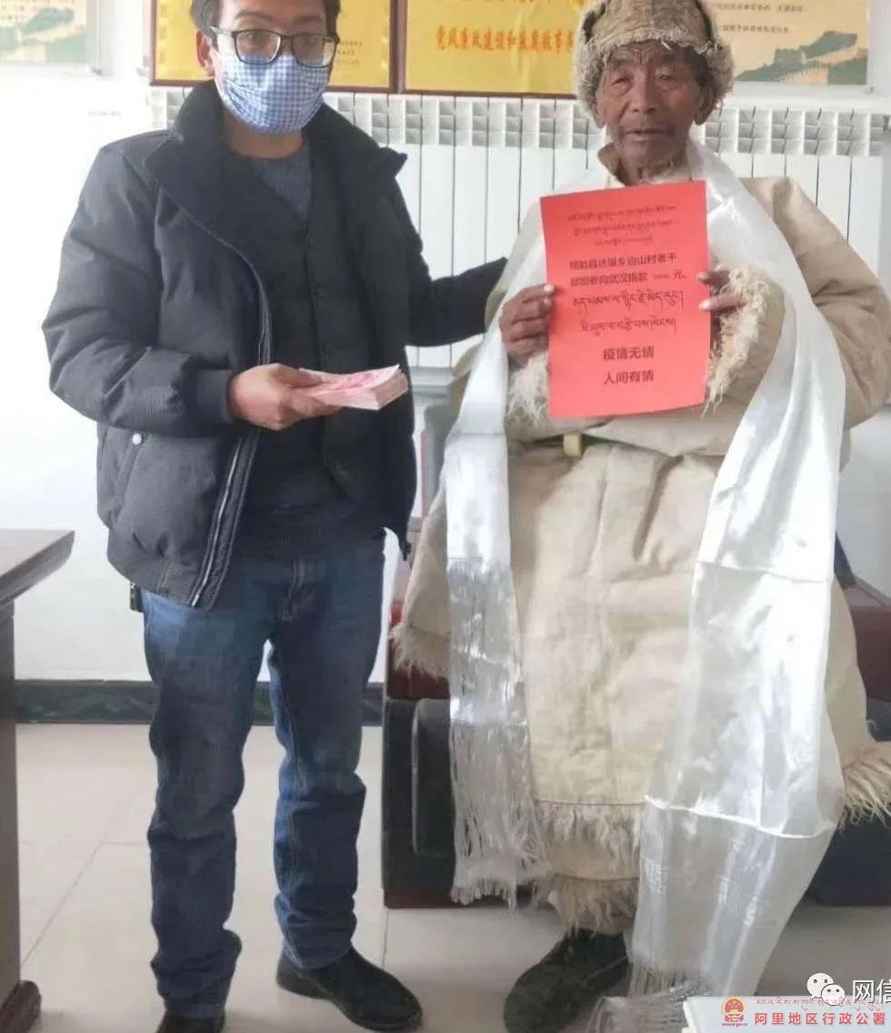 工作人员塔杰对当时的情景依旧印象深刻。“老书记穿着纯白色藏袍,拿着1万元现金,自己就来了。”塔杰说,老人这1万元的现金,在当时个人捐款里可不少,是捐赠金额最高的几人之一,不少年轻党员都被老书记的做法感动了。