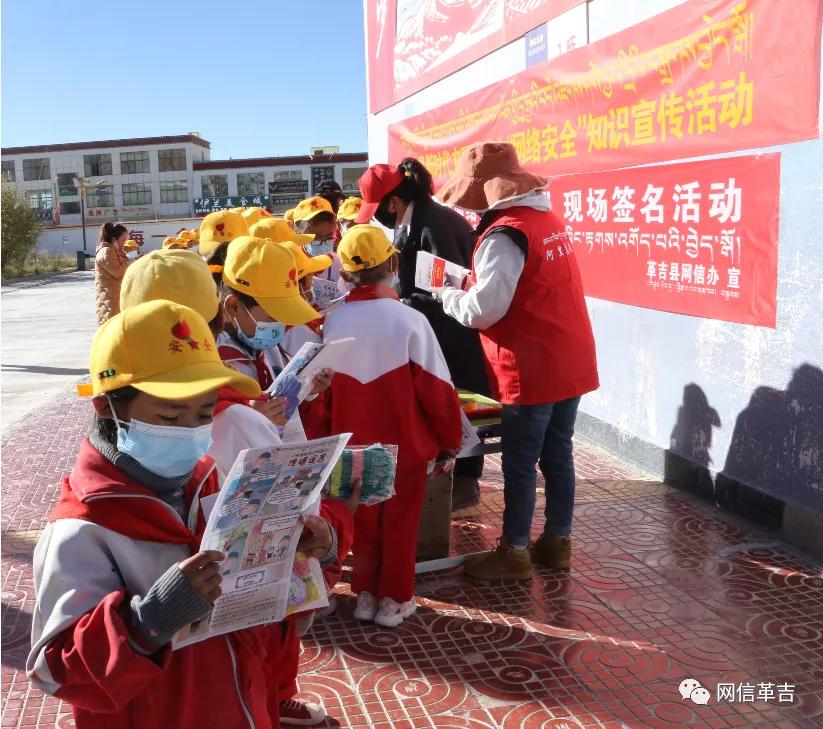 10月11日,革吉县委宣传部(网信办)在农行革吉县支行对面开展以“网络安全为人民 网络安全靠人民”为主题网络安全宣传周宣传活动。活动通过赠送宣传品的方式激发农牧民群众、青少年学生参与积极性,倡议广大网民提高网络素养,文明互动,努力争做新时代好网民,营造文明向上的网络文化氛围。此次活动,受众群众及学生300余人,发放宣传手册200余份,发放宣传品120个。