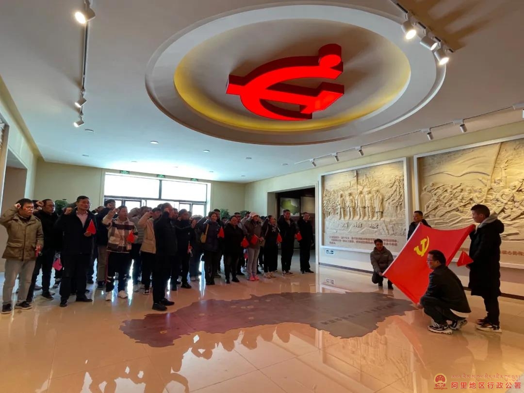随后,全体党员干部在分工委旧址前面向鲜红的党旗,举起右手,重温入党誓词,立誓牢记初心使命,以更加坚定的信念激发爱岗敬业的工作热情和干劲。