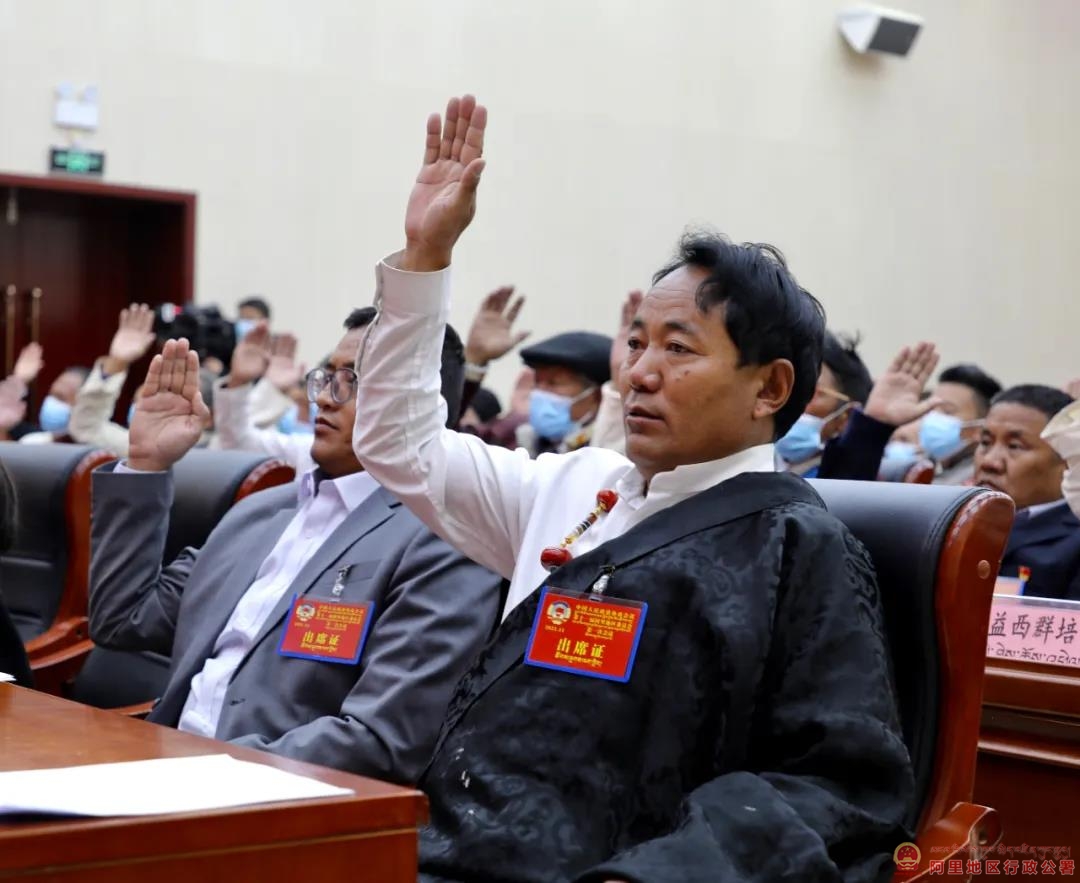 会议通过了《中国人民政治协商会议第十一届西藏阿里地区委员会第一次会议选举办法》和总监票人、监票人名单。