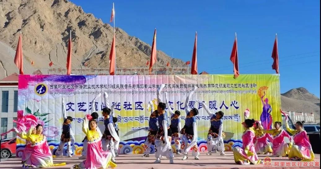 11月26日,阿里地区中等职业技术学校在康乐新居举办以“文艺演出进社区 文化惠民暖人心”为主题的文艺汇演,整场演出把党的十九届六中全会精神融入舞蹈、歌曲中,以群众喜闻乐见的方式将党的声音在基层广泛传达,让党的政策在基层落地落实,让各族群众共享文化发展成果。