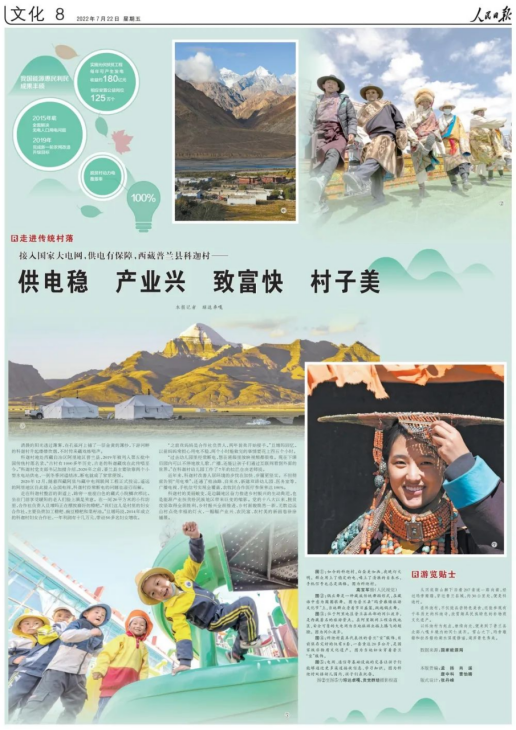 电网、通信等基础设施的完善让孩子们能够通过更多渠道接收信息、学习知识。图为科迦村双语幼儿园内,孩子们在玩耍。 琼达卓嘎、贡觉群培摄影报道 清晨的阳光透过薄雾,在孔雀河上铺了一层金黄的薄纱,下游河畔的科迦村升起缕缕炊烟,不时传来藏戏练唱声。 科迦村地处西藏自治区阿里地区普兰县,2019年被列入第五批中国传统村落名录。“古村有1000多年历史,古老的科迦藏戏在此传唱至今。”科迦村党支部书记加措介绍,2020年之前,普兰县主要依靠两个小型水电站供电,一到冬季河道结冰,断电就成了家常便饭。 2020年12月,随着西藏阿里与藏中电网联网工程正式投运,遥远的阿里地区自此接入全国电网,科迦村经常断电的问题也迎刃而解。 走在科迦村整洁的街道上,路旁一座座白色的藏式小院鳞次栉比,坐在门前享受暖阳的老人们脸上满是笑意。在一间20平方米的小作坊里,合作社负责人旦增玛正在摆放磨好的糌粑。“我们这儿是村里的妇女合作社,主要负责加工糌粑、豌豆糌粑和菜籽油。”旦增玛说,2014年成立的科迦村妇女合作社,一年利润有十几万元,带动50多名妇女增收。 “之前我妈妈是合作社负责人,两年前我开始接手。”旦增玛回忆,以前妈妈常担心用电不稳,两个小时能做完的事情要花上四五个小时。 “过去幼儿园里经常断电,想在班级里放映视频都很难。现在下课后园内可以不停地放儿歌、广播,还能让孩子们通过互联网看到外面的世界。”在科迦村幼儿园工作了7年的拉巴仓决老师说。 近年来,科迦村改善人居环境的步伐在加快、步履更坚实。不但彻底告别“用电难”,还通了柏油路、自来水,新建双语幼儿园、医务室等,广播电视、手机信号实现全覆盖,农牧民合作医疗参保率达100%。 科迦村的美丽蜕变,是边疆地区奋力推进乡村振兴的生动典范,也是能源产业扶贫给民族地区带来巨变的缩影。党的十八大以来,脱贫攻坚取得全面胜利,乡村振兴全面推进,乡村面貌焕然一新,无数边远山村点亮幸福的灯火,一幅幅产业兴、农民富、农村美的新画卷徐徐铺展。 ■游览贴士 从冈底斯山脚下沿着207省道一路向南,经过玛旁雍错,穿过普兰县城,约30公里处,便是科迦村。 在科迦村,不仅能品尝特色美食,还能参观有千年历史的科迦寺,欣赏颇具民族特色的非物质文化遗产。 以科迦村为起点,继续向北,便来到了普兰县北部八嘎乡境内的冈仁波齐。雪山之下,玛旁雍错和拉昂错的湖水深邃静谧,湖岸景色秀美。 数据来源:国家能源局