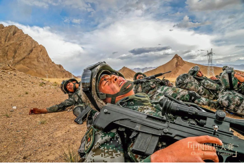 2018年8月7日,西藏阿里军分区某部官兵在海拔5000多米的陌生地域进行武装越野跑,冲过终点后累倒在地。