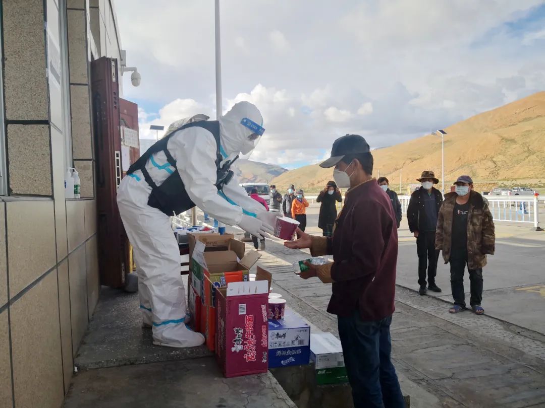 马攸桥边境检查站所在地霍尔乡邦仁村海拔4900米,是沿219国道拉萨、日喀则至阿里的第一道“关卡”。受西藏各地疫情防控形势要求,为切实阻断疫情传播途径,马攸桥边境检查站滞留群众逐日增加,该站针对滞留群众实际,积极协调地方党委政府给予防疫物资支持,在做好二线检查的同时,全力为滞留群众提供生活保障,每日向滞留群众发放方便面、压缩干粮、米、面等生活物资。