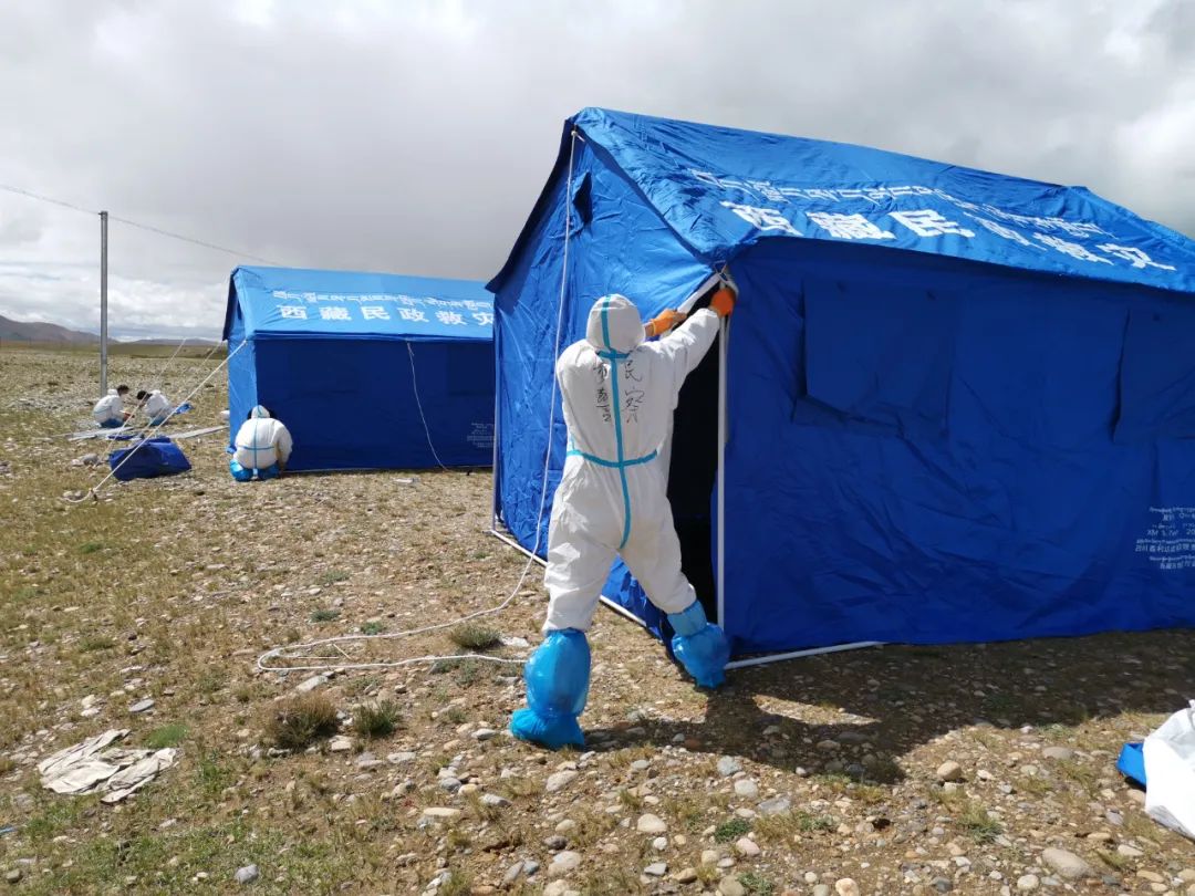 8月22日,西藏出入境边防检查总站马攸边境检查站移民管理警察联合普兰县驻马攸木防疫人员以及滞留群众,连续奋战12个小时,搭建起50顶应急帐篷,为因日喀则疫情防控政策滞留马攸桥的群众搭建起一个临时温暖的“家”。