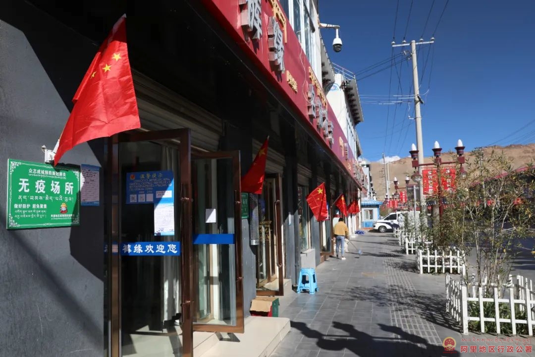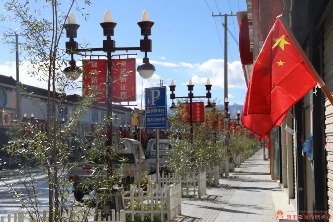 9月30日,国庆前夕,阿里地区各单位、各街道、各社区、各主次干道、沿街商铺,都挂起了五星红旗,放眼望去,一面面鲜艳的五星红旗整齐划一,在微风中轻轻飘扬,涌动着浓浓的爱国情,喜庆的“中国红”,把节日的氛围推向了高潮,全城上下都沉浸在欢度国庆、迎接党的二十大的喜悦气氛中。