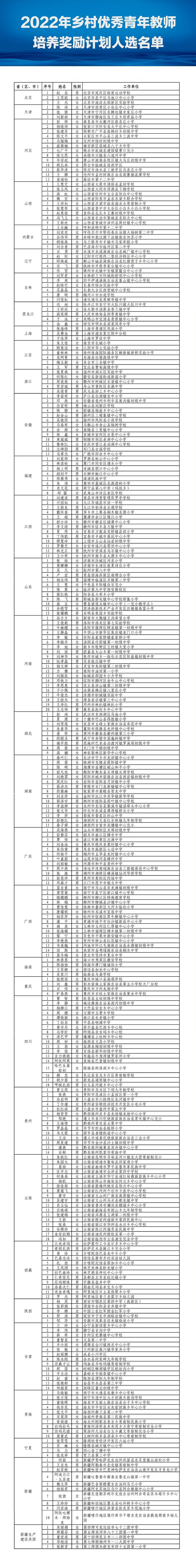 日前,教育部教师工作司、中国教师发展基金会2022年继续实施乡村优秀青年教师培养奖励计划,经省级教育行政部门推荐、资格审查、公示等环节后,最终确定2022年乡村优秀青年教师培养奖励计划入选教师298人。