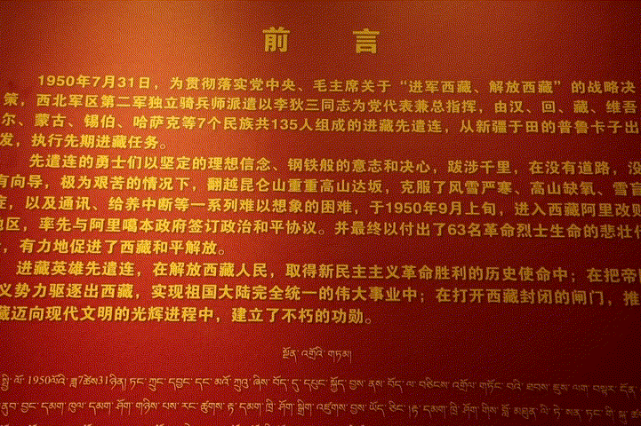 1950年8月,遵照毛主席“向西藏挺进”的号令,由136名官兵组成的进藏先遣连在党代表李狄三率领下过雪山、翻达坂,历时一年两个月,在没有地图、没有向导、没有道路的情况下,官兵们冒着风雪极寒、孤军挺进,徒步行军2800多公里,以牺牲63人的悲壮和坚毅,用自己的双脚为藏北人民踏出了一条解放之路!胜利地把五星红旗插上藏北高原。1951年原西北军区授予该连“英雄连”荣誉称号。全连136名官兵人人记大功一次,李狄三也被授予“人民功臣”荣誉称号。