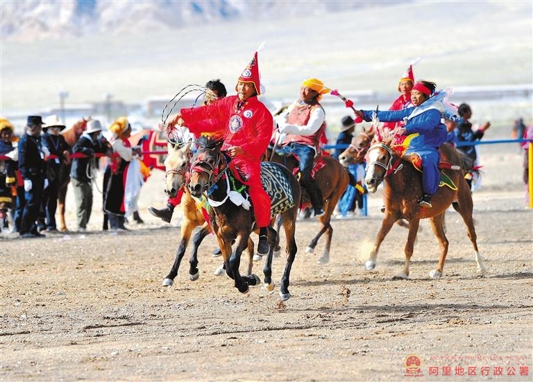 赛马节以“吉祥噶尔·云上恰钦”为主题,吸引了来自七县的7支队伍、193名骑手和272匹骏马,在两天内,进行了大跑马、小跑马、大走马、小走马、马术等6个项目的比赛,上演了马背上的“速度与激情”。广大干部群众和农牧民5.2万人次齐聚赛马场观比赛、过林卡、叙友谊,让团结进步之花在阿里高原常开长盛、让拼搏奋进之歌在藏西大地激情唱响。