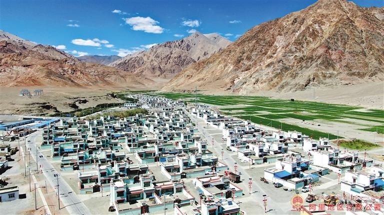在党和国家的关怀下,如今的日土县多玛乡乌江村成为了边境小康村,全村群众通过发展合作社、苗圃等产业,年人均收入达到了2万余元,过上了富足祥和的生活。图为鸟瞰乌江村(7月23日摄,无人机照片)。