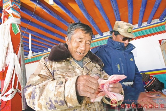 图为多玛乡合作社社员喜领分红。通讯员 嘎玛次仁 摄