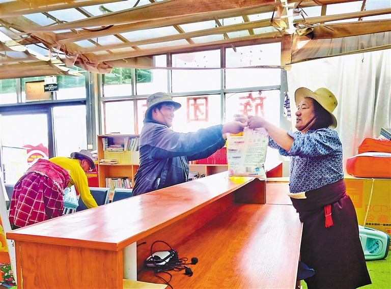 图为改则县洞措乡次日果来村村民在积分超市兑换生活物资。 本报记者 洛桑旦增 摄