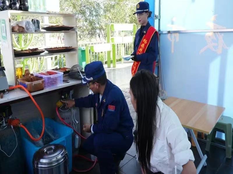 活动中,讲师团成员向夜市商户和过往群众发放消防安全宣传手册,详细讲解发生火灾时如何报警、扑救初期火灾、自救逃生等贴近群众生活的消防常识。并结合消防安全隐患大排查大整治专项行动,监督检查人员按照象雄夜市实际摊位划分巡查区域,采用边查、边清、边改、边宣传的方式开展“防消宣联勤”工作,重点对各铺位电器设备管理、燃气设备使用、消防设施配置等情况进行细致检查,并提醒商户严格规范用气,严禁在使用液化气罐时将其倾倒摆放,定期检查钢瓶、管线、灶具等,每天结束营业后必须对摊点周围可燃杂物及时进行清理,切实消除“夜经济”存在的消防安全隐患。