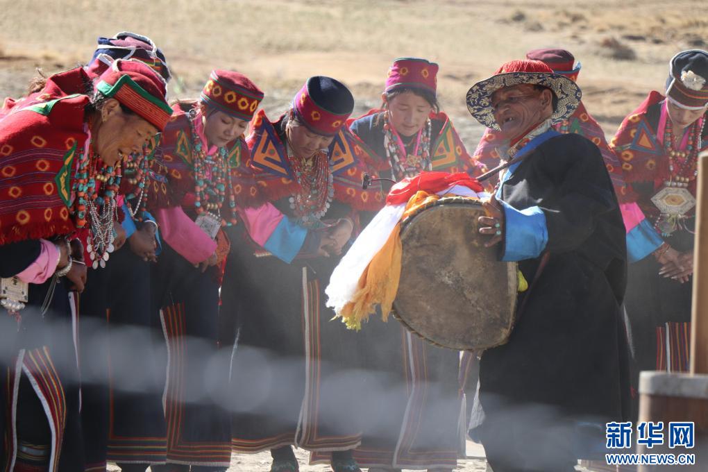 这是乐手格玛扎西群觉身着传统服饰进行表演。新华社 发