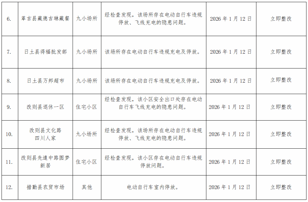 阿里地区消防救援支队1月火灾隐患曝光表
