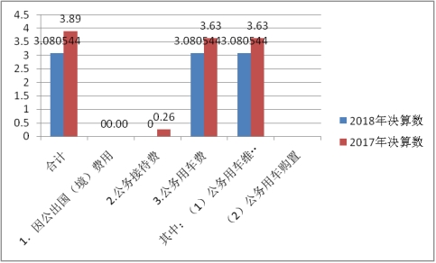 下图为2018年度于2017年度三公经费决算对比柱状图: