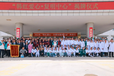 仪式上,地委副书记、行署常务副专员谢志强和韩红女士共同为复明中心进行揭牌。韩红女士为参加此次义诊活动的医疗专家团队颁发志愿者证书。