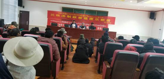 3月11日上午,在康乐新居临时管委会会堂,地区民政局联合康乐新居临时管委会组织开展“民政法制政策进社区”为主题的《老年人权益保障法》、《婚姻法》、《中华人民共和国未成年人保护法》宣传教育活动,地区民政局调研员南加石确出席活动并讲话,地区民政局干部顿珠次仁讲解《老年人权益保障法》和《婚姻法》,贡嘎顿珠讲解了《中华人民共和国未成年人保护法》及困境儿童相关政策,活动由南加石确同志主持,参与群众达300余人次,发放宣传材料250份。活动上,地区民政局干部顿珠次仁同志用通俗易懂的方式,从《婚姻法》、的总则、结婚、家庭关系、离婚等章节方面详细讲解了婚姻自由与平等、婚姻权利与义务、婚姻制度与要求、婚前婚后财产等内容,同时贡嘎顿珠同志结合我地区正在开展的困境儿童分类保障实施工作实际,对《中华人民共和国未成年人保护法》进行了讲解。活动最后,地区民政局南加石确同志为搬迁群众做了教育引导讲话,他从社会主义核心价值观、法治社会角度,教育引导群众尽快融入康乐新居新社会,热爱家庭,热爱社会,敬老爱幼,鼓励群众做一名“爱国、团结、敬业、诚信、友善、勤劳”的好公民。这次民政法制政策进社区宣传教育活动,受到了群众的热烈欢迎,不仅增强了群众社会公德心,而且有效提高了群众的法治意识,对法治社区和社区治理工作都起到了一定作用。