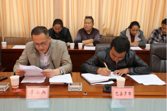 2019年4月19日下午,行署副秘书长李小兵在行署办公楼四楼会议室,主持召开行署办公室2019年第十三次集体学习会议,行署副秘书长巴桑罗布出席会议。