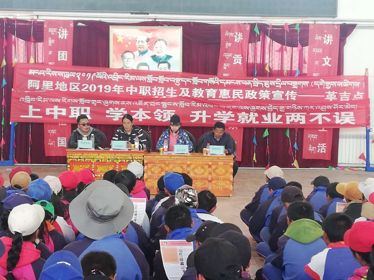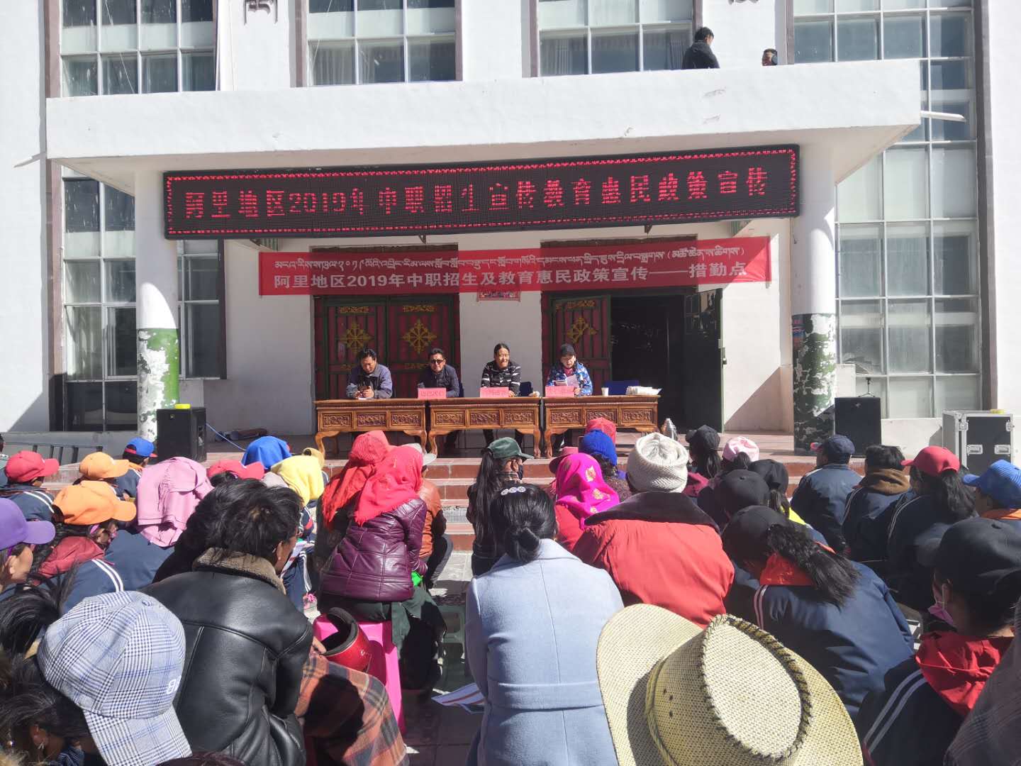 2019年4月26至4月30日,阿里教育局联合地区职校组织专门力量,赴七县进行招生宣传工作。东三县宣传组由地区职校副校长白玛德吉带队,教育局教育科副科长次仁卓玛、地区职校短培办负责人边巴次仁、招就办干事刘朋组成宣传组。