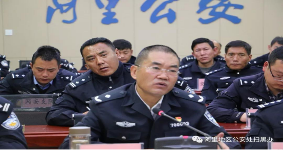 2019年5月21日上午,阿里地区公安处组织召开扫黑除恶打非治乱专项斗争工作推进会,此次会议以电视电话会议形式开至乡镇一级,会议由阿里地区公安处党委副书记、副处长、调研员、处扫黑除恶打非治乱专项斗争领导小组副组长兼任办公室主任牛振民同志主持, 公安处党委委员、技侦支队长伦珠同志,处各成员单位负责人、民航、海关、边防、反恐等部门负责同志及扫黑办全体民警在主会场参加会议,七县局主要领导同志、全体民警,各公安检查站、派出所民警在各分会场参加会议。