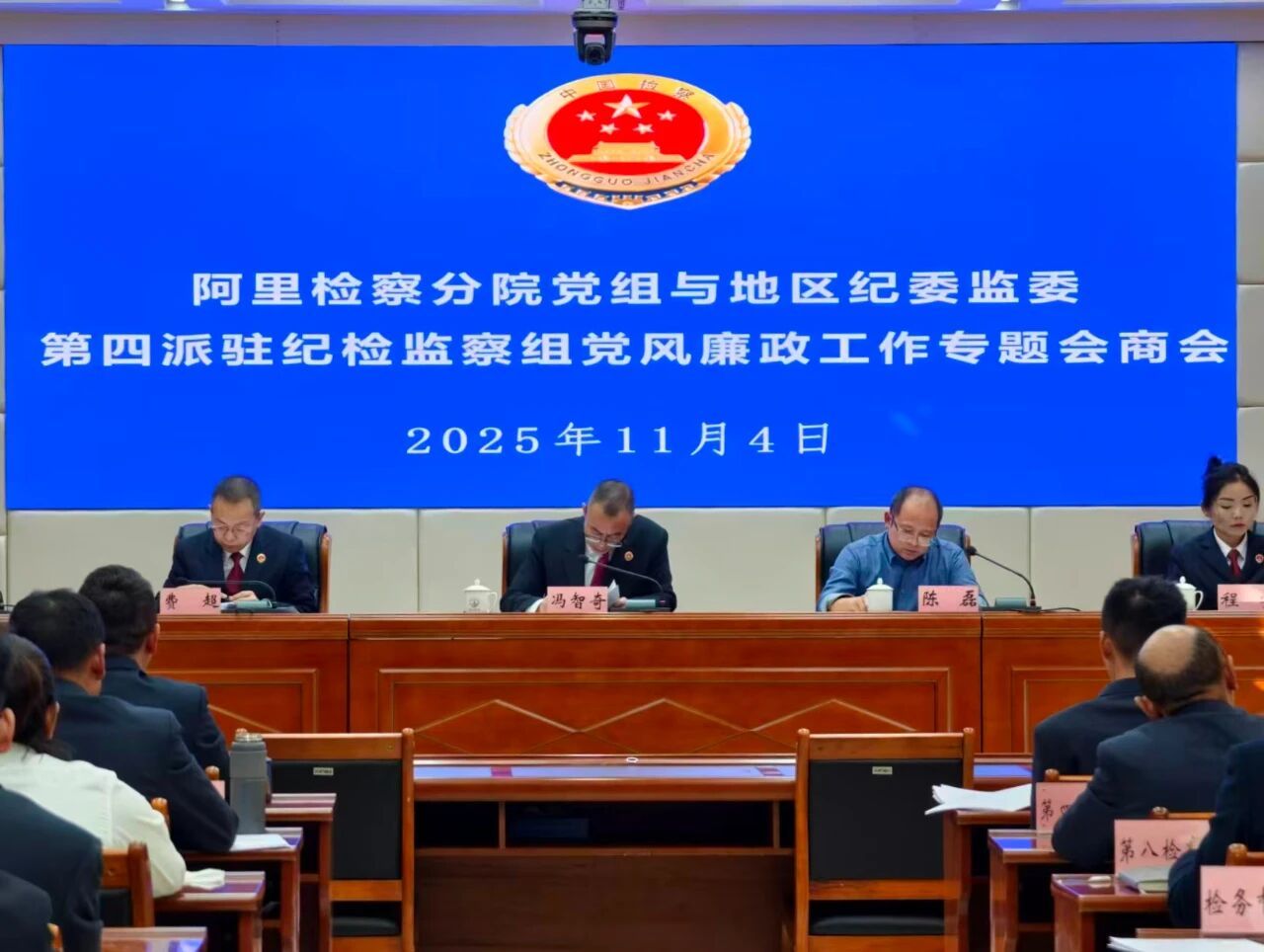 为持续深化党风廉政建设,进一步凝聚分院党组主体责任与纪检监察监督责任合力,11月4日,阿里检察分院与地区纪委监委第四派驻纪检监察组联合召开党风廉政建设工作专题会商会。会议由分院党组书记、检察长人选冯智奇主持,第四派驻纪检监察组组长陈磊出席会议并通报有关情况。分院在家班子成员及全体干警参加。