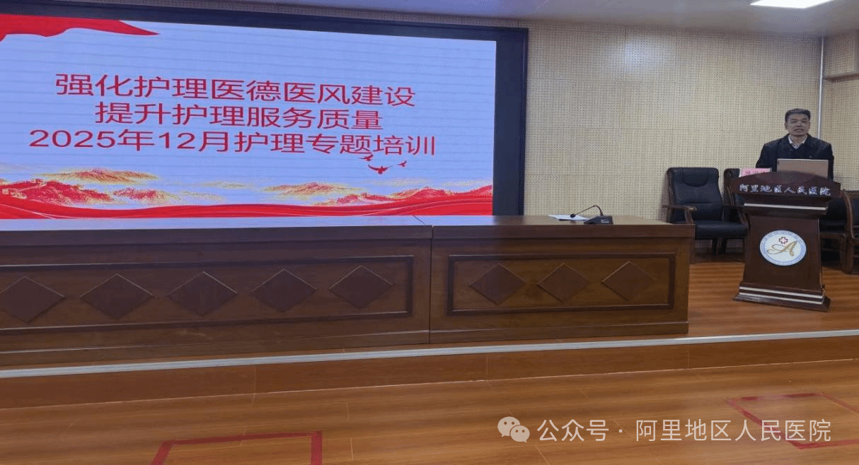 为扎实推动护理队伍的医德医风建设,切实提高护理服务的规范化水平与职业素养,筑牢医疗服务的道德防线,阿里地区人民医院护理部于2025年12月4日在急诊楼四楼学术报告厅举办了护理医德医风专题培训。本次培训涵盖分管护理工作副院长陈富禄、全院各科室护理人员、护理单元负责人以及护理管理骨干,共计85人全程参与。培训采用“政策解读+案例教学+实操研讨”的多元化形式,聚焦护理工作的核心场景,精准传达医德医风建设的要求,确保培训内容深入人心,切实发挥以培训促进提升的实际效果。