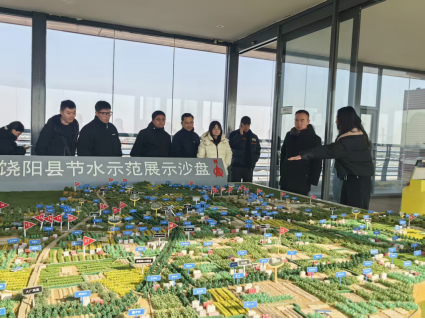 地区人社系统干部职工参观衡水市饶阳县现代农业示范区沙盘。