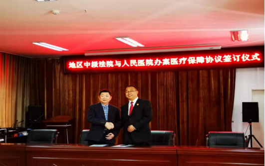 为保障我地区执法机关工作人员和部队官兵在工作、训练过程中遭遇突发伤病后能及时得到有效救助,保证广大患者能享受到基本医疗服务,近日,在韩军院长和薛军强副院长的具体指导下,我院与阿里地区中级人民法院、武警某部签订“绿色通道”医疗救治协议,协议签订当天中级人民法院副院长高佳伟、武警某部领导出席仪式。