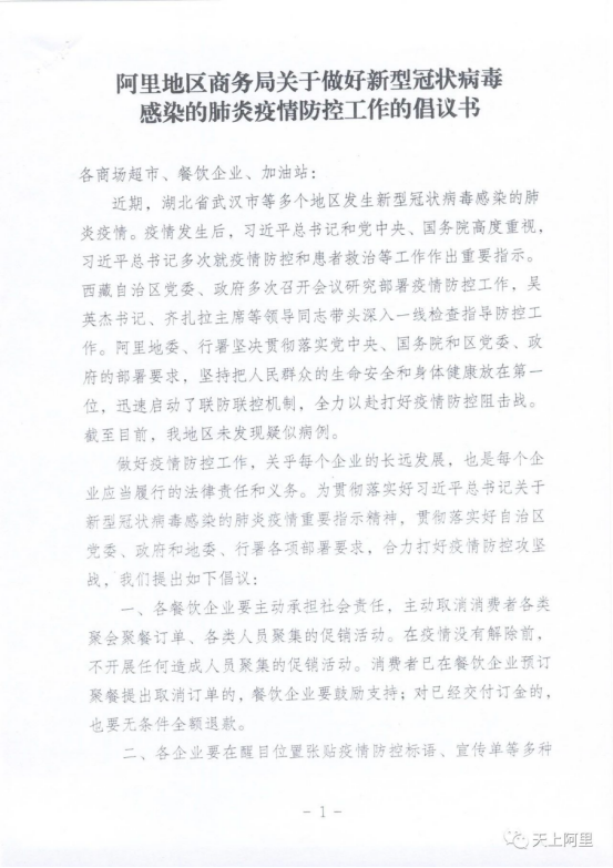 地区商务局关于做好新型冠状病毒感染的肺炎疫情防控工作的倡议书