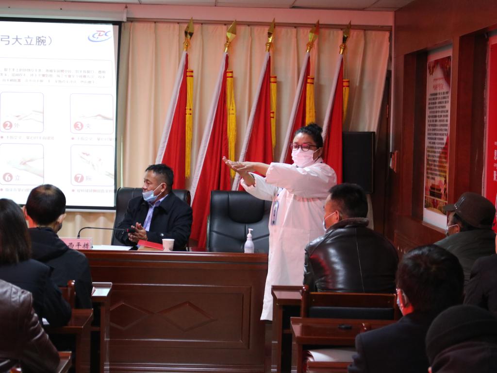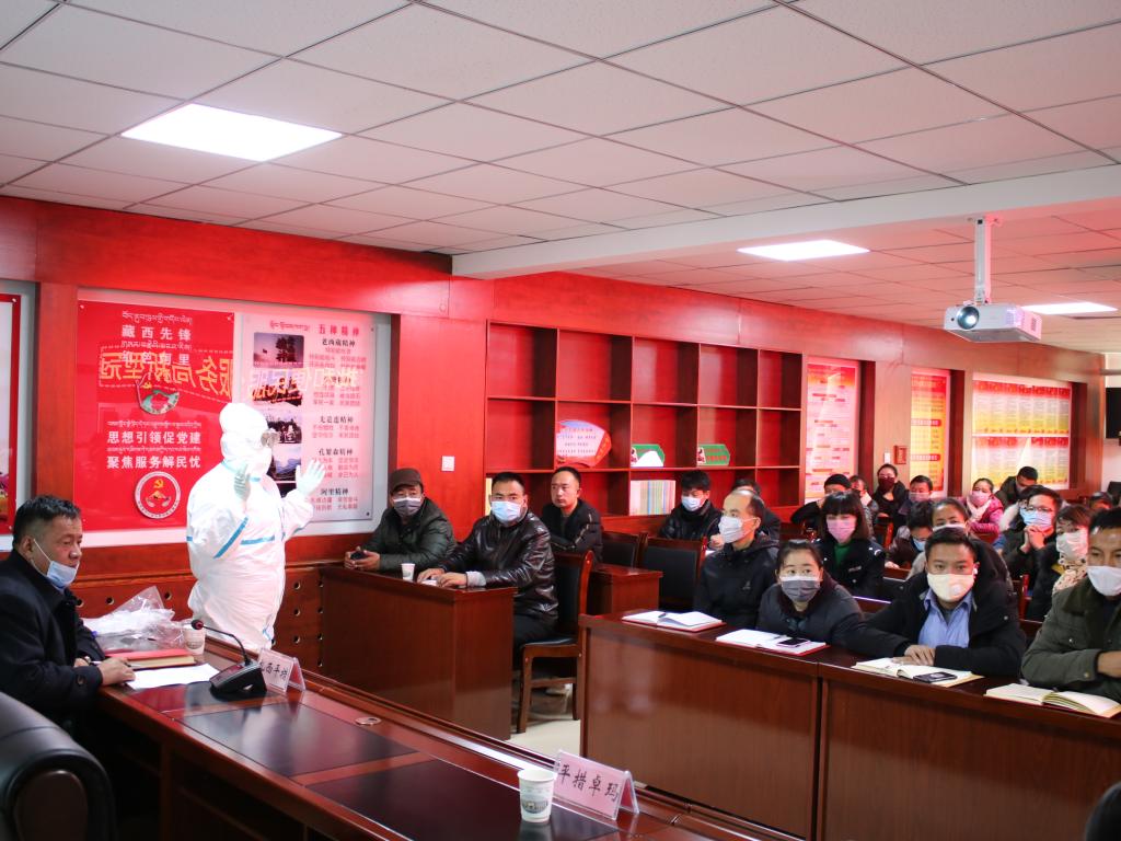培训会上,地区疾控中心平措卓玛老师一行3名医生以专业的角度为大家讲解了新型冠状病毒感染的肺炎和普通感冒的区别、如何正确佩戴口罩、7步洗手法、防护服的正确穿戴方法等方面的知识,呼吁大家坚持在日常工作生活中运用,进一步加强自身防护意识。