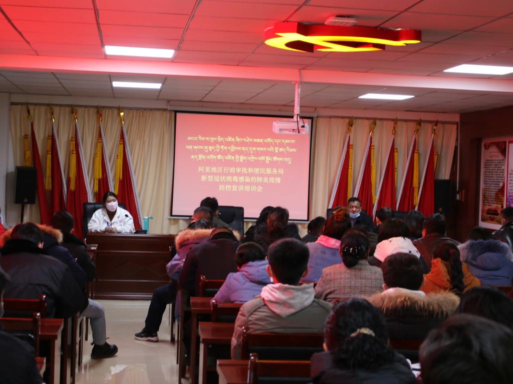 为深入贯彻落实中央、自治区以及地委行署关于新型冠状病毒感染的肺炎疫情防控工作的重要部署要求,切实抓好地区政务服务中心新型冠状病毒感染的肺炎疫情防控工作,有效阻断疫情传播途径,遏制疫情扩散和蔓延,坚决防止人员交叉感染,全力保护干部职工、办事群众生命安全和身体健康,2月10日,地区行政审批和便民服务局组织开展新型冠状病毒感染的肺炎疫情防控宣讲培训会,机关干部职工、政务服务中心窗口工作人员以及后勤人员等70余人参加。
