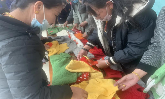 现场小孩满脸笑容,开心的说“爱心妈妈织的毛衣很漂亮,我穿着也很合身,谢谢爱心妈妈”。当爱心妈妈们看到受助孩子开心快乐的笑容时,更加坚定了继续参与巾帼志愿服务的信心和决心。