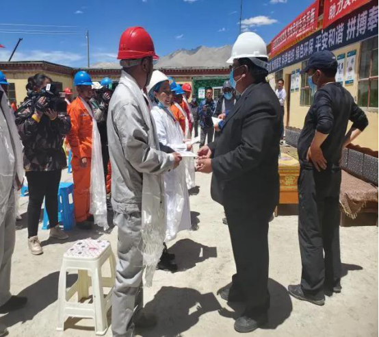 在活动现场,区电力、地区工会负责人向全体参建人员转达自治区总工会、区电力公司及阿里地委行署的关心和问候,对他们在特殊时期攻坚克难,全力保障工程进度表示崇高的敬意,并嘱咐他们继续发扬劳动精神、劳模精神、工匠精神和老西藏精神,在着力做好职工生产生活、卫生防疫、劳动保护等工作的前提下,切实抓好项目安全、质量和进度,全力保障当地人民早日用上安全优质的大网电。