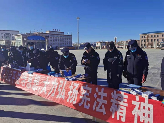 为加强法治宣传、弘扬宪法精神,进一步强化公民宪法意识,提升法治公安形象和法治文化自信,全面增强群众的宪法意识,营造遵法学法守法用法的浓厚氛围,根据地区普法办的统一安排,12月4日上午,公安处法制支队组织禁毒、经侦、刑侦、交警、网安、治安、国保、森警等部门在地区广场开展以“深入学习宣传习近平法治思想,大力弘扬宪法精神”为主题的宪法宣传活动。