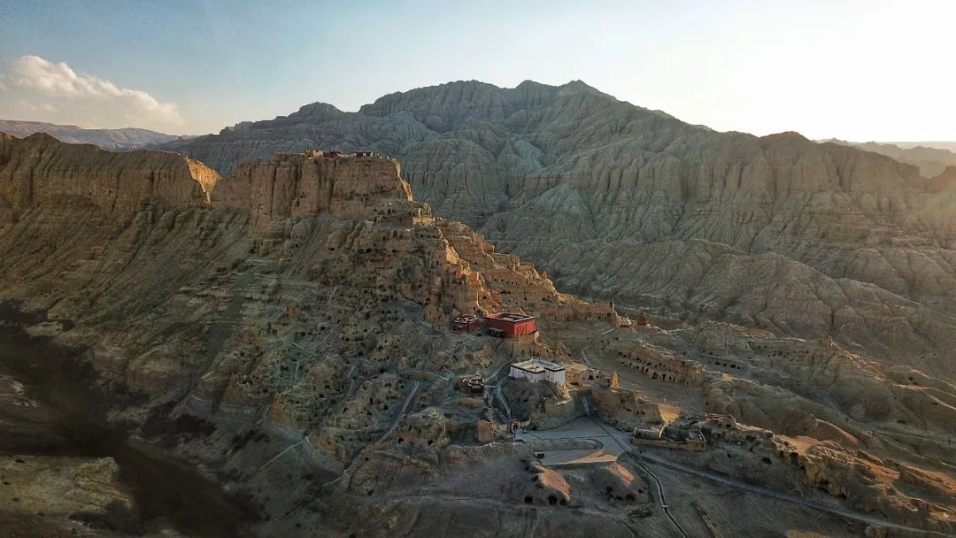 札达土林的砂岩与黄土高原的黄土有相似性质,在上面打洞不会坍塌。因此,古格王朝的先民在百米绝壁上奇迹般修建洞穴群,其复杂和完善程度,让人惊叹。