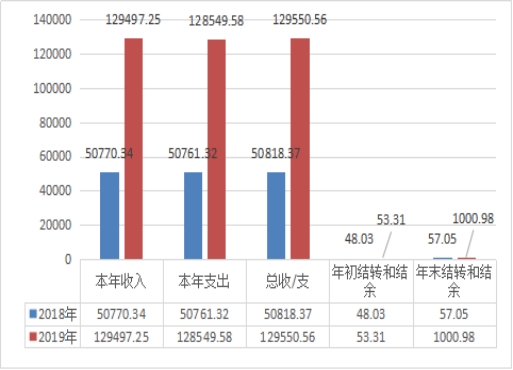 2019年度预算收入合计129550.56万元,比上年的50818.37万元,增加78732.19万元,同比增加155%。其中:财政拨款收入129497.25万元,上年结转53.31万元。