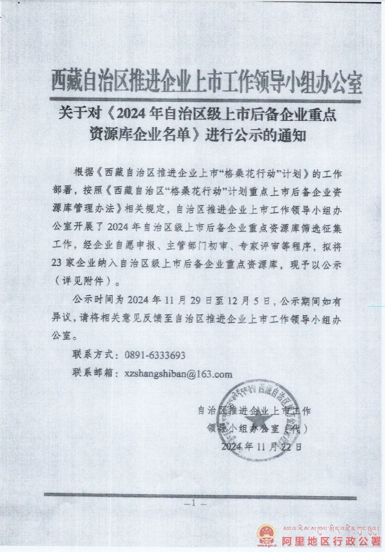 关于对《2024年自治区级上级上市后备企业重点资源库企业名单》进行公示的通知