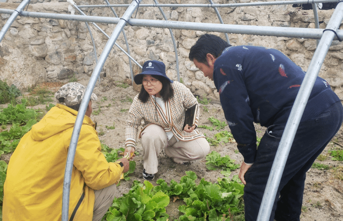 10月1日,西藏阿里地区噶尔县扎西岗乡鲁玛村,日光温暖,大棚里的蔬菜绿意盎然。陕西省第11批援藏干部、陕西省渭南市农业科学研究院高级农艺师何晓庆与团队成员徐文勇再次走进村庄,回访2024年启动的“小型棚体蔬菜种植项目”试点成效。