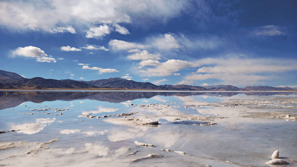 革吉县“盐羊古道”上的盐湖。 朱峰 /摄